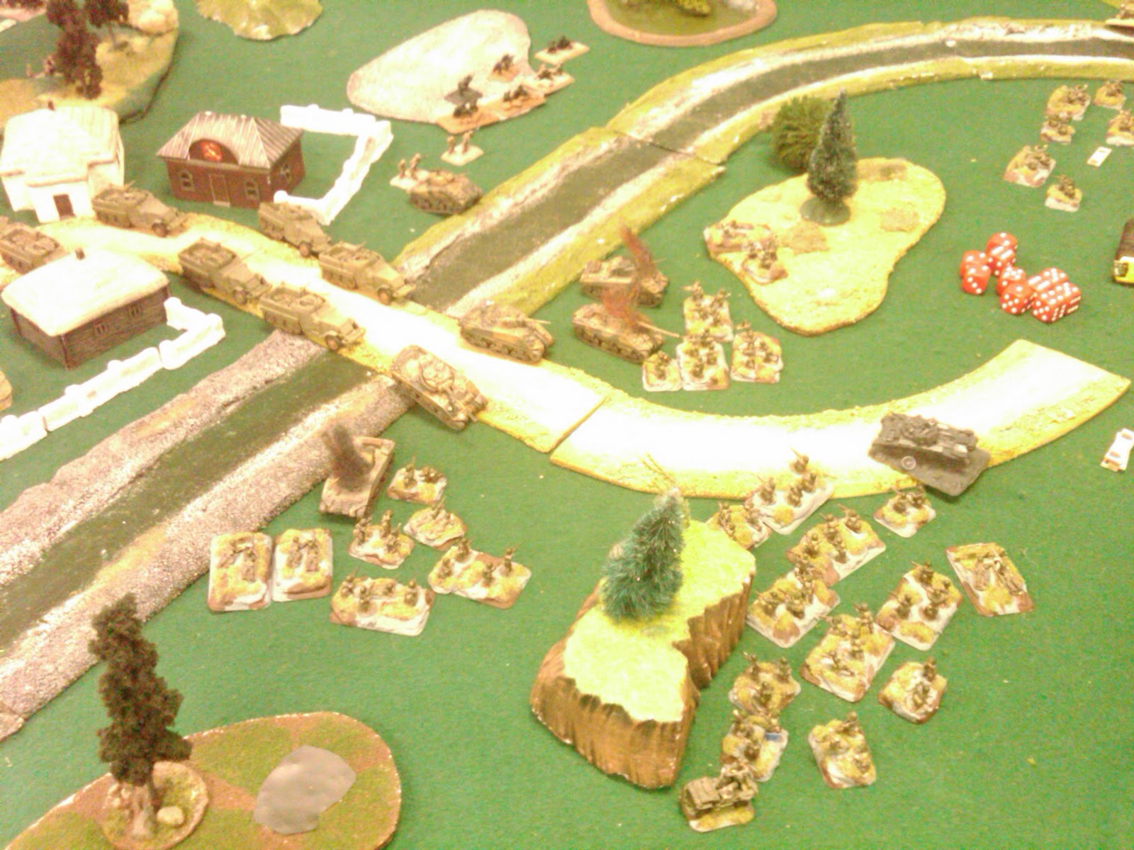 I played with my German Panzerpioneer Kompanie. Rodrigo had his British Armored. Shane had a Russian Strelkovy force. George had his US Infantry. Ben had a US Tank Company. And Tom had a British Infantry force, well balanced with Artillery and Armor support.
